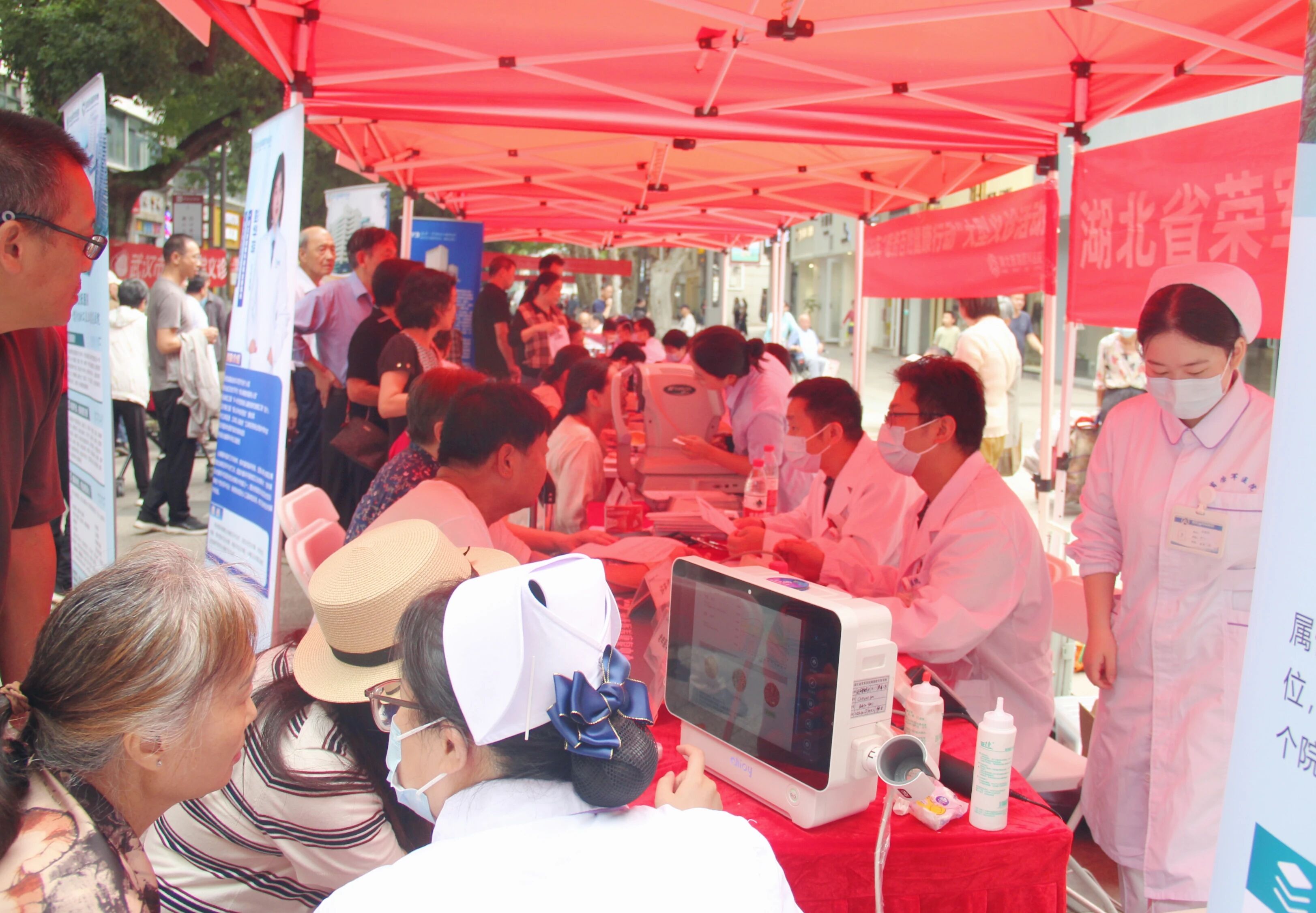 9月27日,2025年湖北省“服务百姓健康行动”大型义诊活动(武汉江南片区)在武昌区水果湖步行街举行。期间,湖北省荣军优抚医院组织了一支重点科室专家团队参与义诊,为群众提供“家门口”的健康服务。