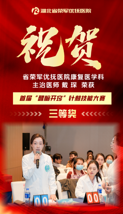 近日,首届“醒脑开窍”针刺技能大赛在天津举办。我院康复医学科主治医师戴琛凭借扎实的理论功底与娴熟的针刺手法,从全国众多参赛选手中脱颖而出,荣获大赛三等奖。