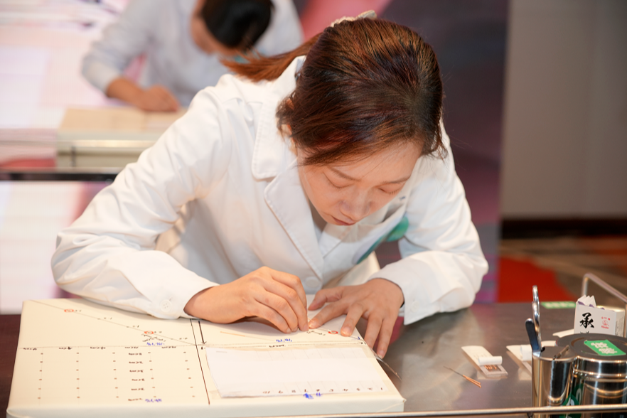 大赛共设置针刺基本功、针刺标准化患者操作、快问快答、病例分析作答四个核心环节,参赛选手围绕操作规范性、穴位定位准确性、针刺手法熟练度、医患沟通技巧等关键维度,紧扣 “醒脑开窍” 针刺法核心主题,完成了实践操作与理论知识的双重检验。