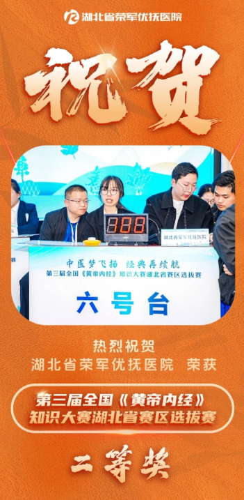 近日,第三届全国《黄帝内经》知识大赛湖北省赛区选拔赛在湖北中医药大学成功举办。省荣军优抚医院代表队凭借扎实的中医理论功底、出色的临场发挥和默契的团队协作,从全省19支参赛队伍中脱颖而出,荣获大赛二等奖,展现了医院在中医药经典传承与临床实践方面的深厚实力。